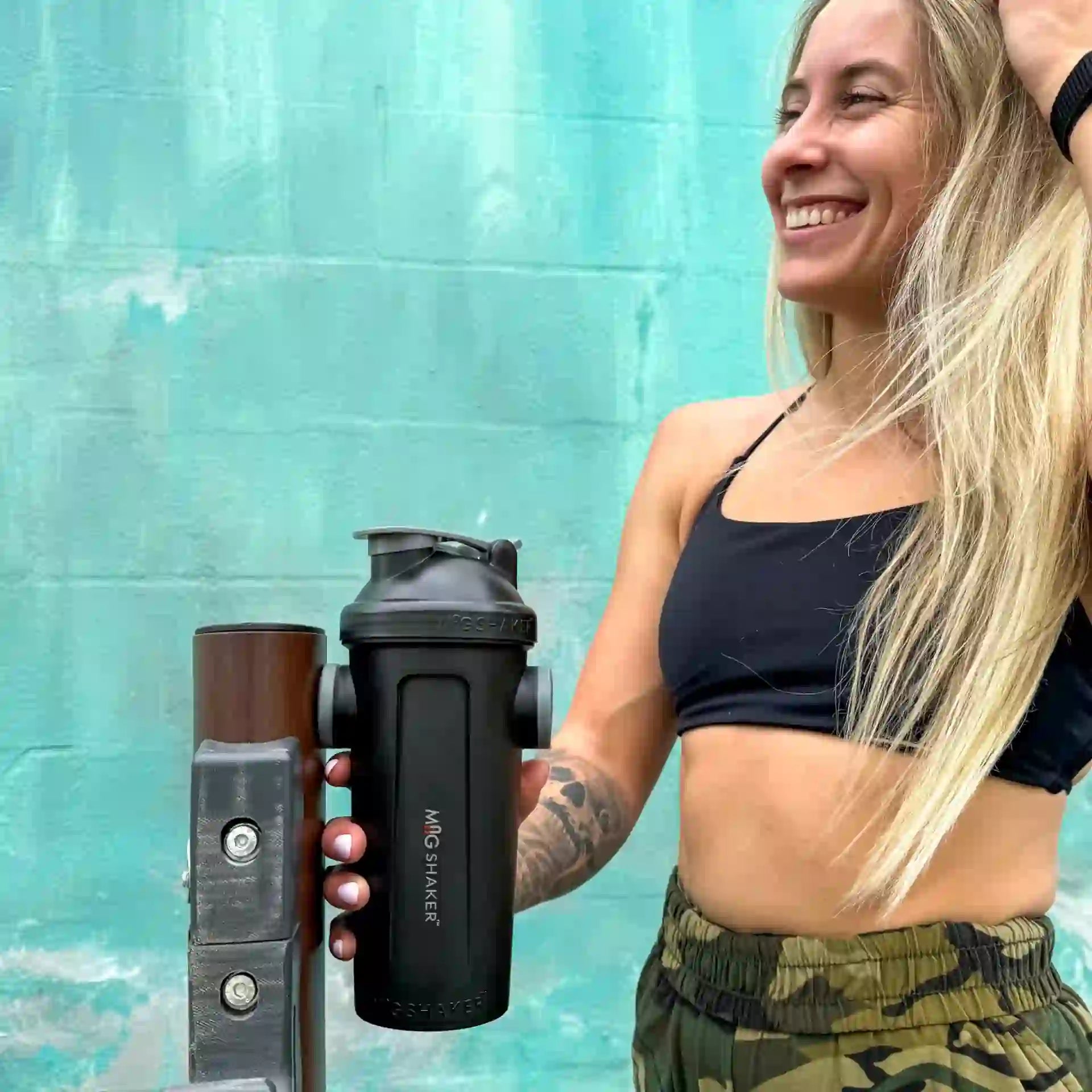 Mag Shaker keeps your phone and bottle safe from falling weights!